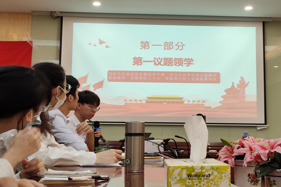 黄华科以“习近平总书记在省部级主要领导干部‘学习习近平总书记重要讲话精神,迎接党的二十大’专题研讨班上发表重要讲话”为第一议题,带领支部党员进行学习。他强调,身为学生党员在前进道路上,要坚持全心全意为人民服务的根本宗旨,树牢群众观点,贯彻群众路线,始终保持同人民群众的血肉联系,始终接受人民批评和监督,始终同人民同呼吸、共命运、心连心。