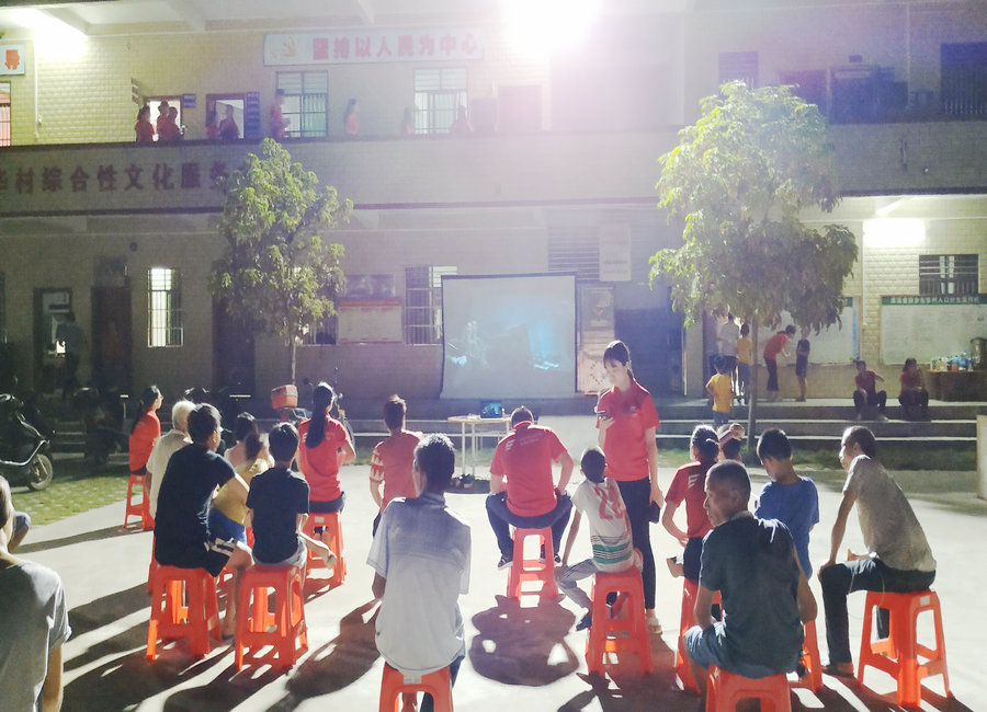 为了提高新一代的思想提高文化素质,提高对党的发展历程的认识,增强民族自信和爱国情怀。7月15日至19日,三下乡党员社会实践服务队组织观看红色电影为专题的党员学习活动,服务队队员及村民每天准时出席观看学习,《厉害了!我的国》、《建党伟业》、《战狼2》、《芳华》的依次播出得到了大家的赞赏与支持。