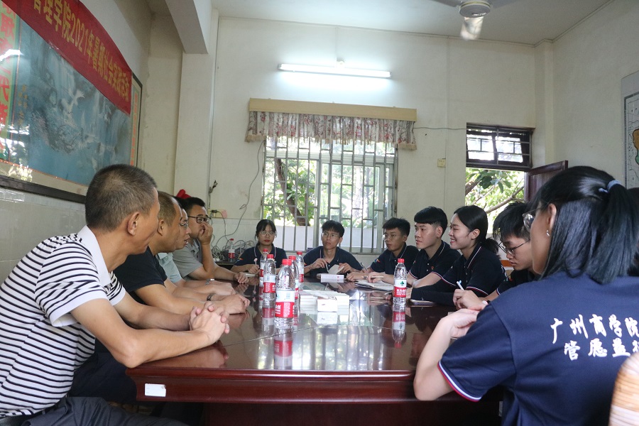 实践队围绕党史教育、乡村振兴、红色传承、校友情怀等主题对华城镇镇长、广州商学院优秀校友吴恺平进行深度访谈,吴镇长指出,近年来华城镇党委、政府整合资源优势,推动乡村振兴与全域旅游一体联动,为华城镇带来磅礴生机和发展活力;吴恺平表达了对母校的深厚情谊,并鼓励实践队从思想上树立自信,做好时间规划,立足于专业知识学习,在乡镇实践中贡献青春力量。