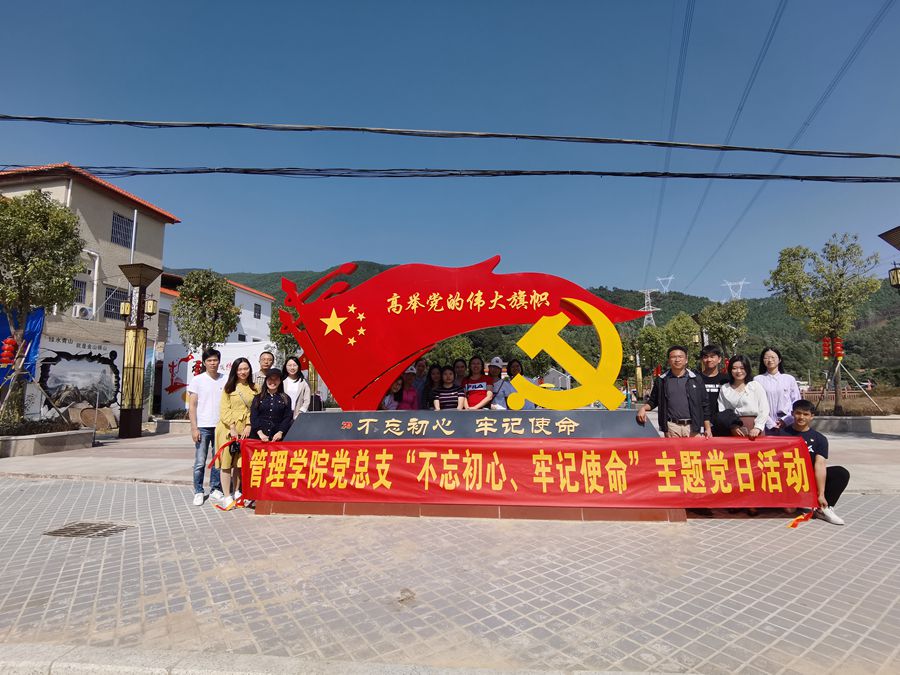 为进一步推动“不忘初心、牢记使命”主题教育往深里走、往实里走、往心里走,11月9日,管理学院党总支前往惠州龙门低冚“红色村”开展“不忘初心、牢记使命”主题党日活动,此次前行的有管理学院院长黄立军,党总支书记汪椿东,副院长白丽以及教工党员。