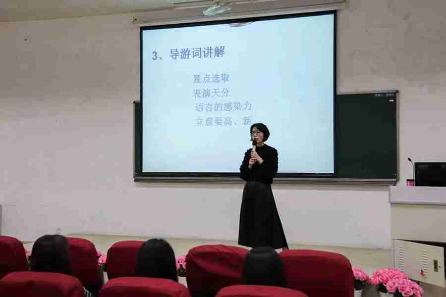 在导游技能大赛的号角正式吹响,为了增加同学们对该比赛的了解,提高参赛者对竞赛的专业技能,旅游学院主办的导游技能大赛培训讲座于3月13日中午12:30在第二报告厅举行,各二级学院的参赛者以及对竞赛感兴趣的同学们均参与本次讲座。