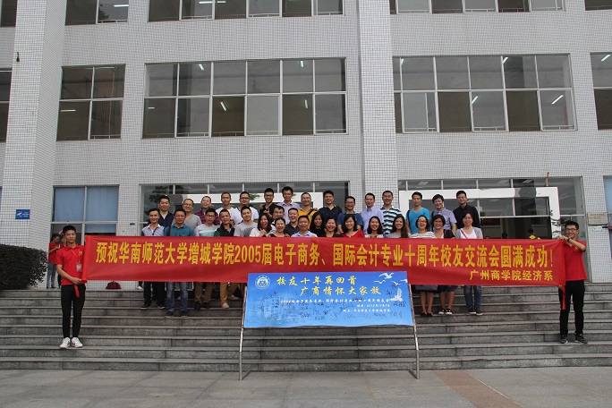 2015年11月7日,中国特色社会主义学习会经济系分会举行了“校友十年再回首,广商情怀大家放” ——2005届电子商务专业、国际会计专业校友聚会活动。经济系党总支书记陆川、康大职业技术学院管理系副主任张雪梅、院学习会理事长郭钧仪、2005届电子商务专业、国际会计专业毕业十周年校友以及学习会经济系分会全体干部参加了此次校友会。