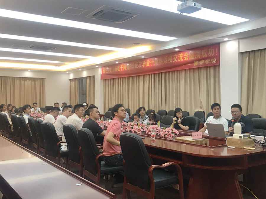 为加强校友与学校之间的沟通与交流,促进学校校友携手同发展,在毕业10周年之际,严格落实疫情防控各项要求前提下,管理学院2010届电子商务专业校友一行25人于2020年8月15日返回母校,8月15日中午,管理学院在二政208会议室举2010届电子商务专业校友交流会,广州商学院团委书记李锦堂(学生在校期间辅导员)、校友办主任翁楚歆、管理学院党总支书记汪椿东参加了交流座谈会。