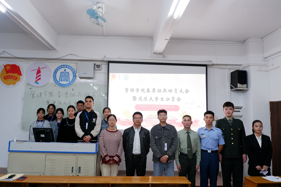 为贯彻落实习近平强军思想,适应“一年两次征兵两次退役”改革要求,吸引优秀大学生参军入伍、建功军营,管理学院于12月9日在第三教学楼104召开了春季征兵动员大会暨退役大学生分享会。管理学院党总支书记汪椿东、管理学院征兵联络员李文娣出席本次会议,会议由何韵诗主持。