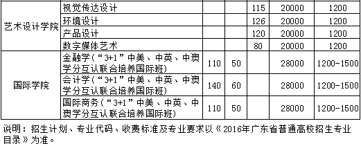 2016年广州商学院广东省招生计划